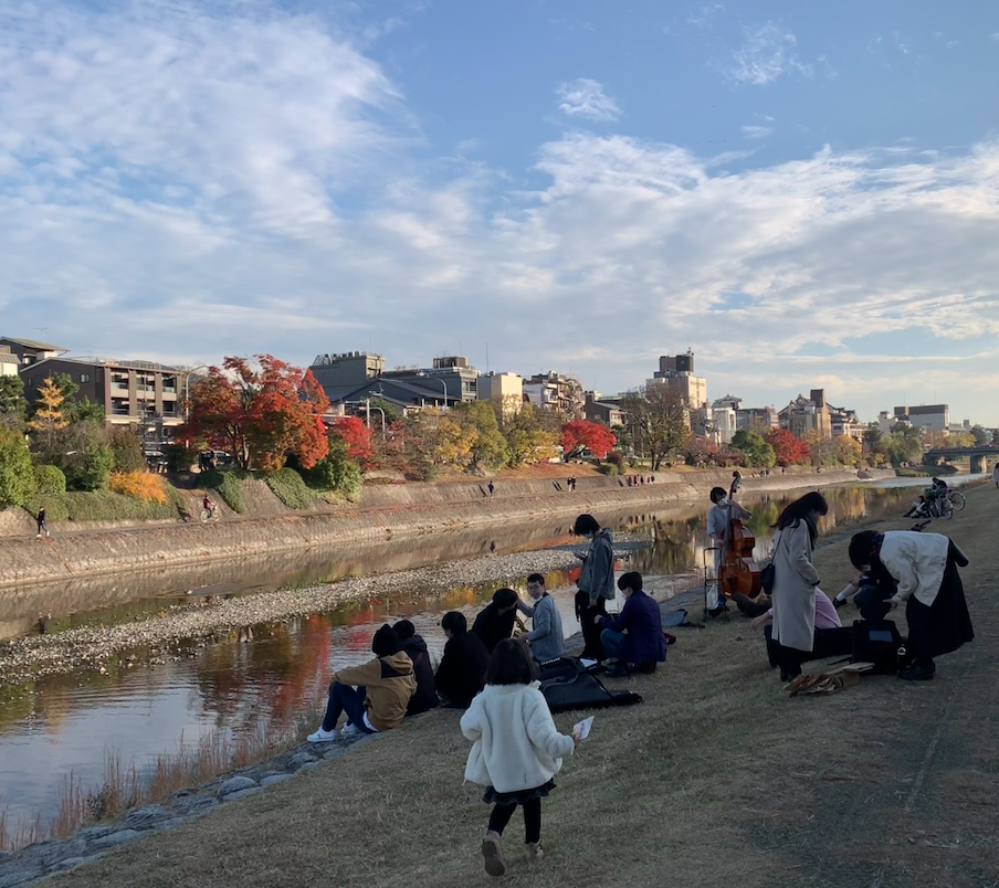 Upstream, at the dramatic confluence of the Kamo and Takano, rows of broad stepping stones carved into turtles led out to a triangular delta, where the banks sloped sharply up to a tree-lined park. Students lounged everywhere, playing music and baseball, making short films, laughing as they ate convenience store desserts. I recovered quickly.